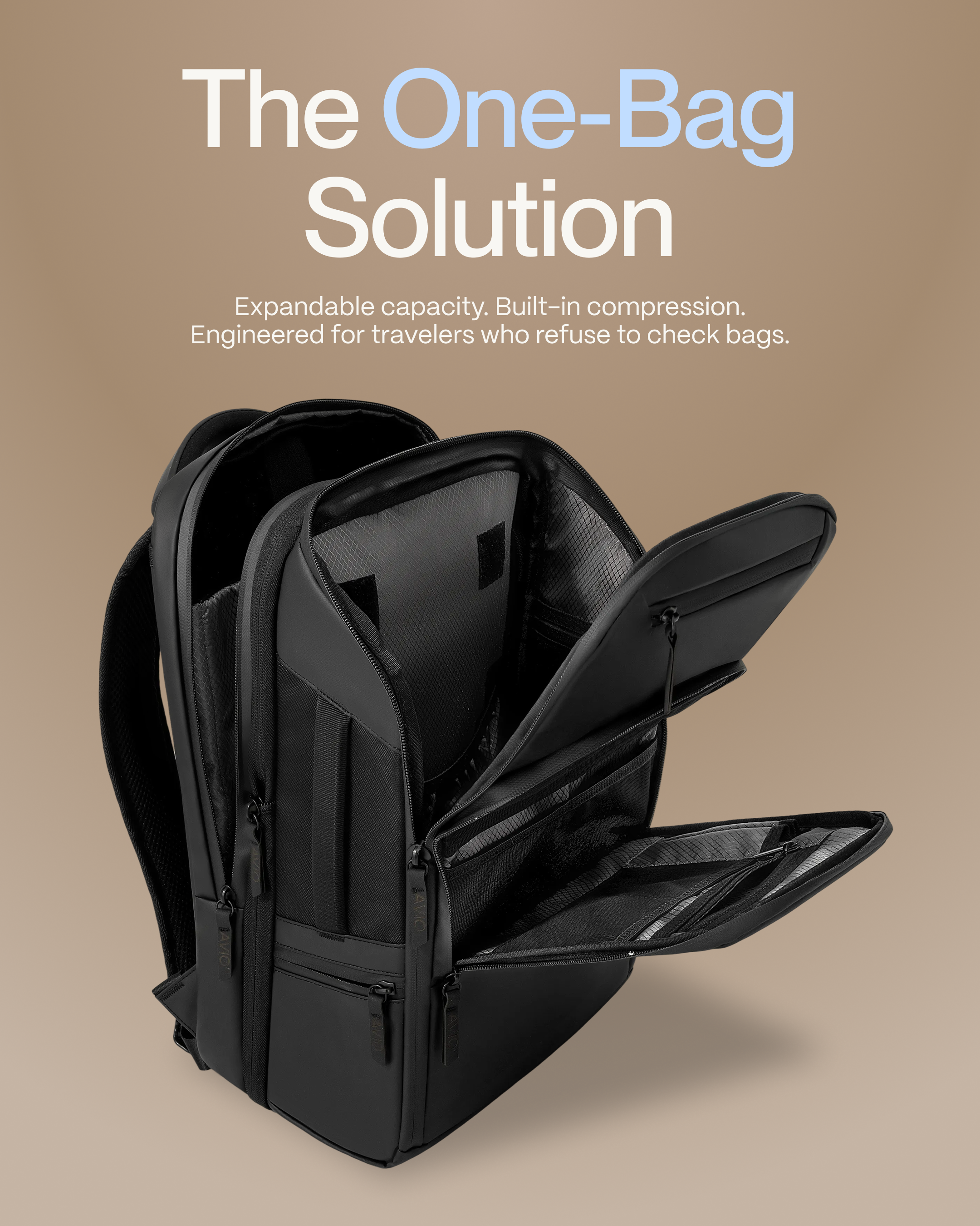 Reduce bulk by 70%. Only travel brand with integrated compression.